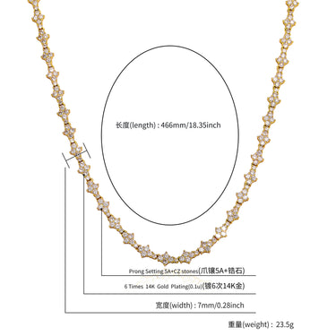 European and American cross-border zirconium plum blossom tennis bracelet necklace hip-hop rap fine toss not pricked airplane tennis chain wholesale